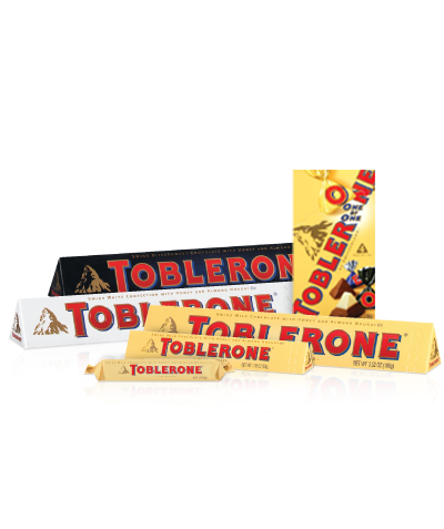 Toblerone, the legendary triangular Swiss chocolate with honey and almond nougat.