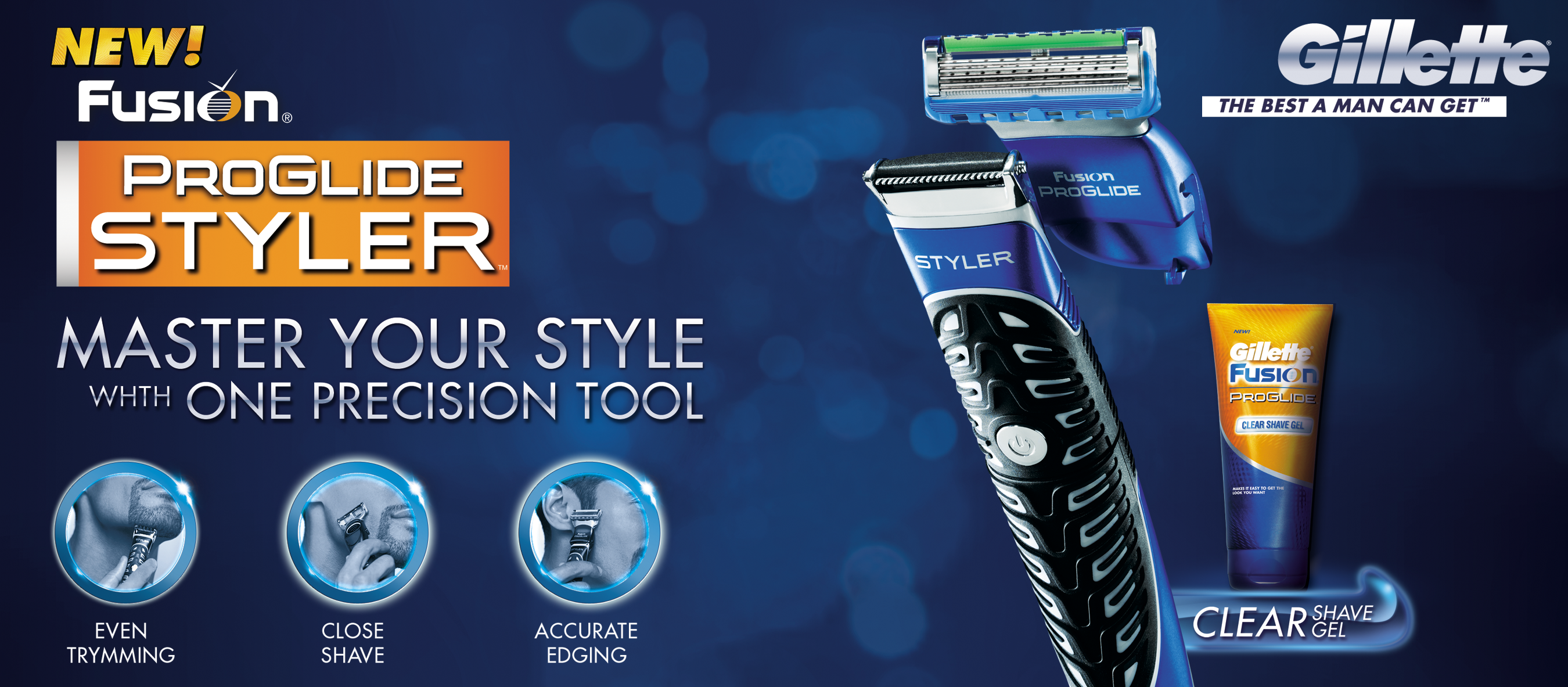 Want to add some flair to your facial hair style? Introducing the Gillette Fusion ProGlide Styler, the 3-in-1 facial hair styling tool that trims evenly, shaves closely and edges accurately. Whatever facial hair style you choose, whether it’s a simple goatee, a thin chinstrap, or a clean shave with sharp sideburns, you’ll be able to master your best look, even in the shower. The Gillette Fusion ProGlide Styler is watertight and totally safe to use in wet environments.