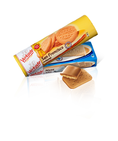 Verkade is the well known manufacturer of biscuits like 'Nizza' , 'Café Noir' and 'San Fransisco'.