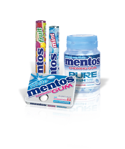 The small mints of Mentos are known for their slightly hard exterior and a soft, chewy interior. In 2005 Mentos gum was introduced.