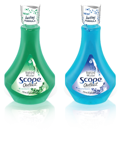 Scope mouthwash kills millions of bad-breath bacteria, leaving your mouth feeling clean and refreshed.